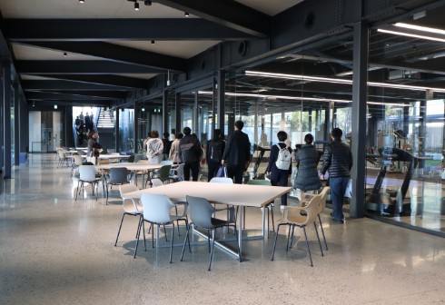 全体プログラムとして学部学科説明、各学科のミニ模擬講義を実施した後、希望者には個別相談や、9月に竣工したばかりの新体育館見学ツアーも行いました。